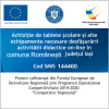 Comuna Românești, în calitate de beneficiar al proiectului „Achiziție de tablete școlare și alte echipamente necesare desfășurării activității didactice on-line în comuna Românești, județul Iași" Cod SMIS 2014+ 144460, proiect cofinanțat din Fondul European de Dezvoltare Regională prin Programul Operațional Competitivitate 2014-2020., axa prioritară 2- Tehnologia informației și comunicațiilor-TIC, pentru o economie digital competitivă, acțiunea 2.3.3-Îmbunătățirea conținutului digital și a infrastructurii TIC sistemice în domeniul e-educație, e-sănătate și e-cultură - secțiunea eeducație, doreste sa faca publice urmatoarele informatii cu privire la contractele de achizitie incheiate in cadrul proiectului mai sus mentionat.